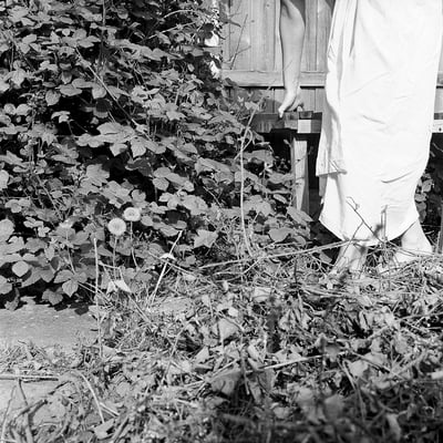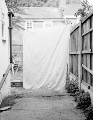 Inhabitation reflects about about the approbriation of a transient home through the garden, the 2-dimensional quality of the immaculate white bed sheets in 3-dimensional space of the back garden. White linen also has a long tradition in photography as a background for staging and is symbollically charged especially in European art history.