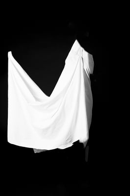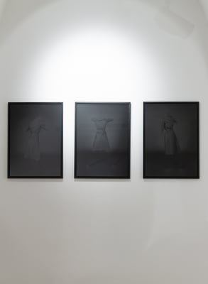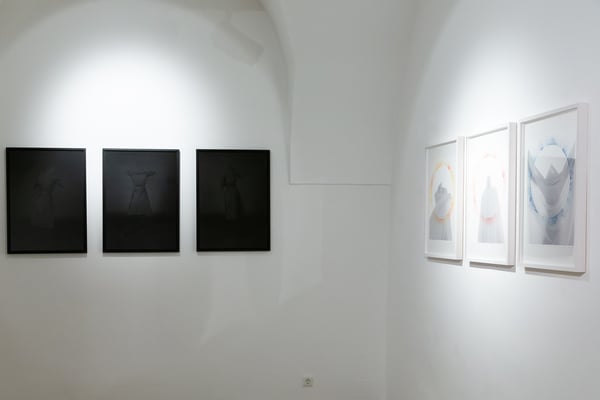 Weiss auf schwarz schwebt in den Fotografien eine erkennbar menschliche, vermutlich weibliche Silhouette, die aus unterschiedlichen Richtungen festgehalten wurde. Ihr Kopf und Gliedmaßen wurden aus dem Bild genommen und die Übergänge verunklärt. Weder genaue Zeit noch Ort oder Person sind zu erkennen und trotz all der Eingriffe, der Verhüllung und Beschneidung bleibt „das Menschliche“ in den Fotos erhalten. So stellt sich die Frage: „Wie viel Anwesenheit braucht eine Person um noch präsent zu sein?“